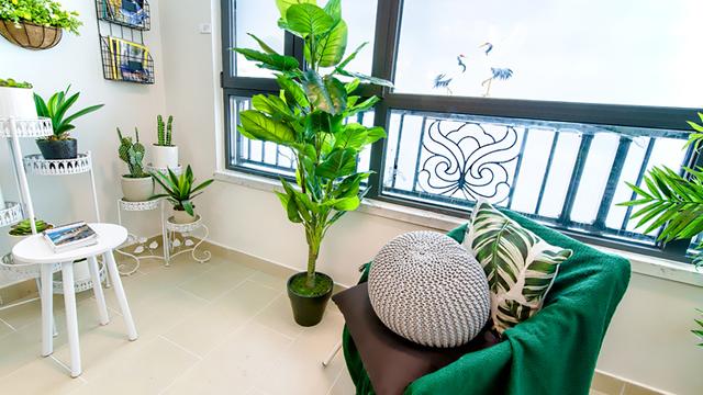 陽臺上除了可以擺放各種各樣的植物之外,還可以在擺放在一套迷你的桌椅,或者是一張舒適的躺椅,在天氣好的時候躺在上面看看書、曬曬太陽,也是一件十分享受的事情,仿佛置身于大自然之中。